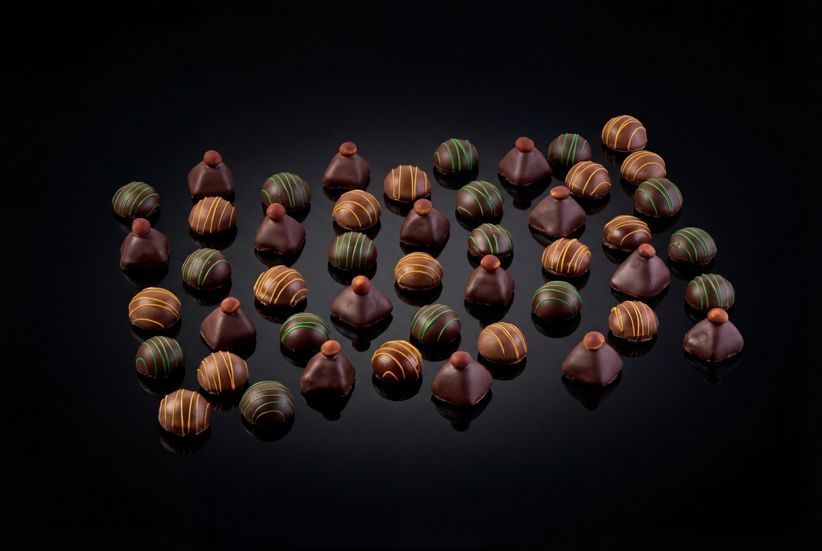 Для приготовления ассорти конфет используют три варианта наполнителя: из ароматной малины, классического пралине и лайма. Сладости покрыты глазурью из темного или молочного шоколада, а в качестве дополнительного украшения используют цветную глазурь. Порадовать себя конфетами ручной работы можно не только по поводу значимого торжества, даже обычный кофе-брейк на работе с таким ассорти превратится в праздник.