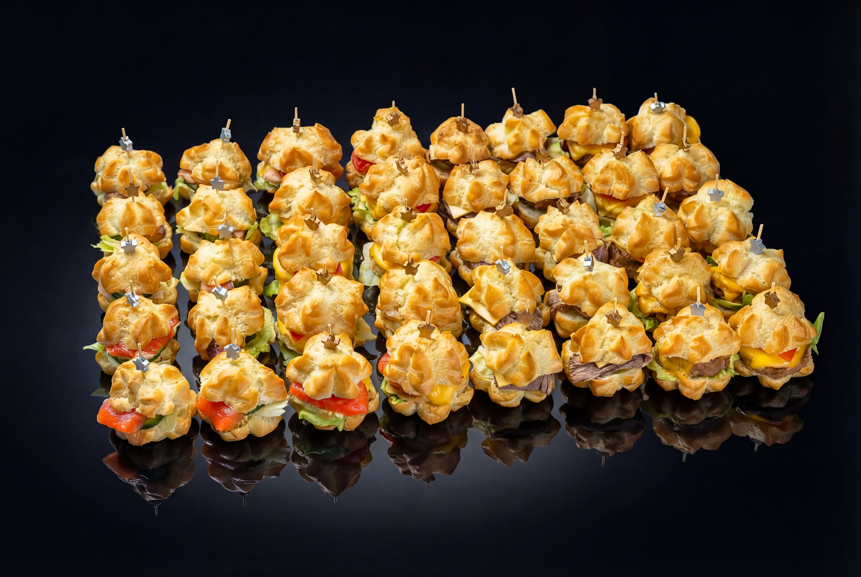 Ассорти мини бургер-профитроли — это отличный выбор для любого формата мероприятия.