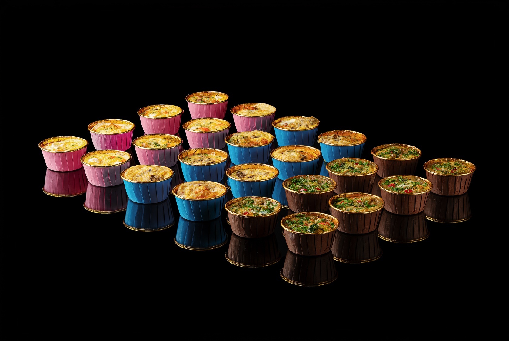 Фриттата овощная с брокколи и шпинатом, 8 шт - брокколи с/м, шпинат с/м, перец болгарский свежий, сливки 22%, яйцо куриное столовое