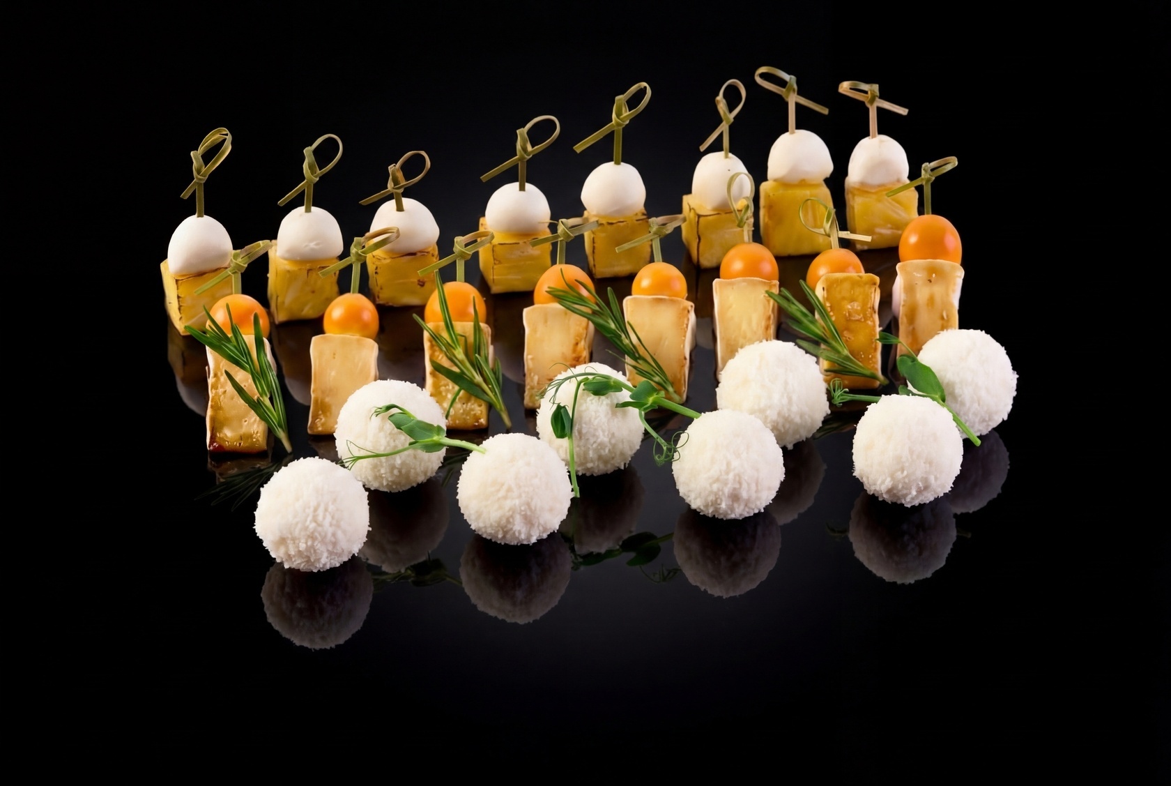 Ассорти сырных канапе «Экзотик» — это яркое сочетание вкусов и текстур, которое станет отличным дополнением к фуршетному столу. Каждое канапе приготовлено с использованием лучших ингредиентов, что гарантирует насыщенный и запоминающийся вкус. Канапе с камамбером и физалисом порадует вас нежностью сыра и легкой кислинкой экзотического фрукта. Шарики из брынзы в кокосовой стружке добавляют коктейлю свежести и оригинальности, а канапе с моцареллой и поджаренным ананасом подарит сладковатый привкус, который прекрасно сочетает молочный вкус сыра и нотки ананаса.