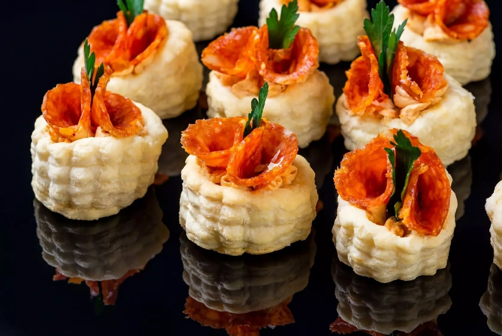 Волованы с пепперони порадуют любителей пикантных вкусов благодаря вяленым томатам и свежей зелени. Для поклонников более легких вариантов подойдут волованы с куриным филе и черри — их свежесть и насыщенность прекрасно дополнят друг друга. А волованы с сервелатом и фисташками добавят интересный контраст текстур и вкусов. Эти закуски идеально подойдут для фуршетов и банкетов, позволяя вашим гостям наслаждаться разнообразием в каждом кусочке