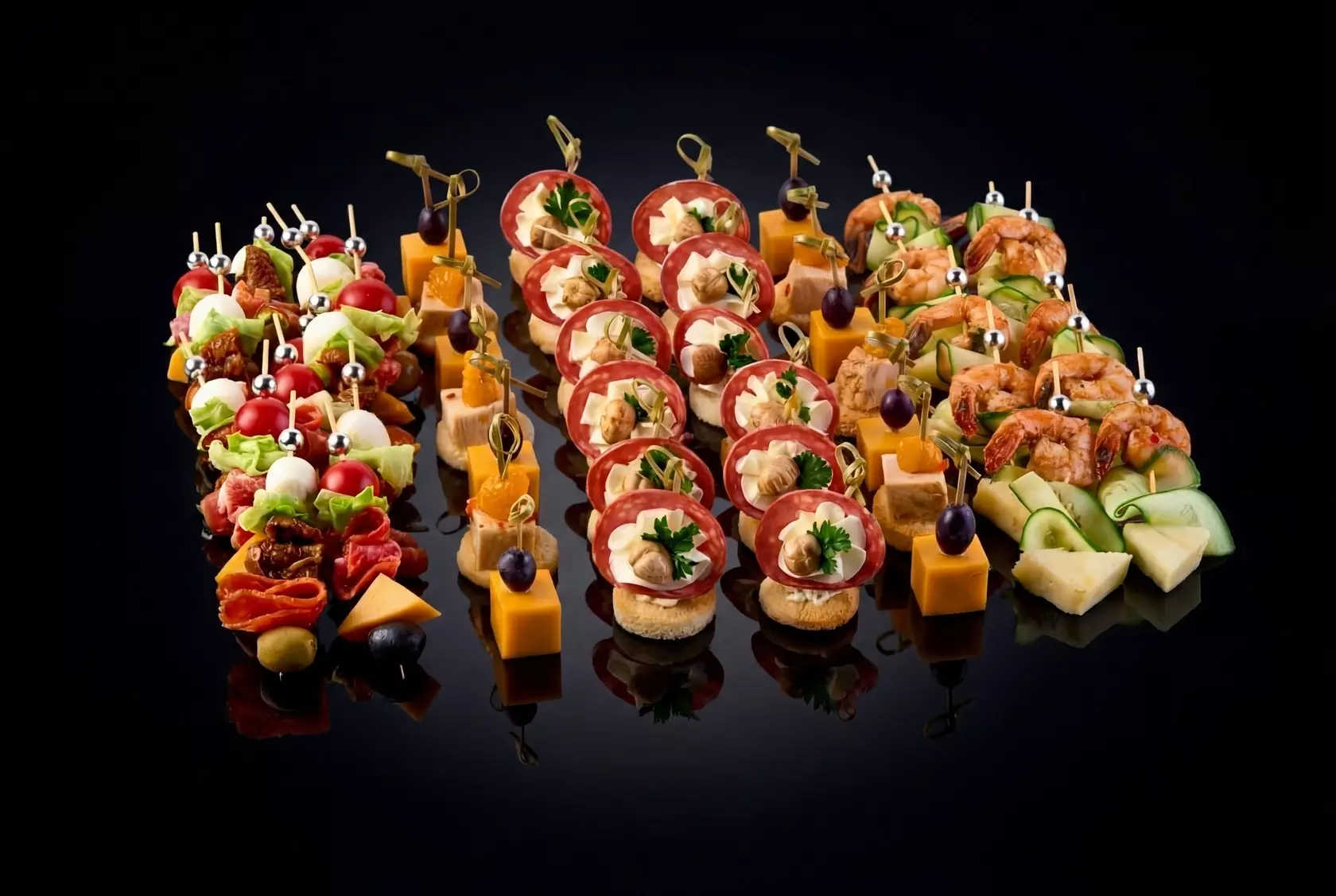 Большое ассорти канапе — в наборе разнообразные канапе, которые порадуют ваших гостей своими яркими вкусами и оригинальным оформлением. Каждое канапе приготовлено с любовью и вниманием к деталям, чтобы сделать ваш стол по-настоящему аппетитным.