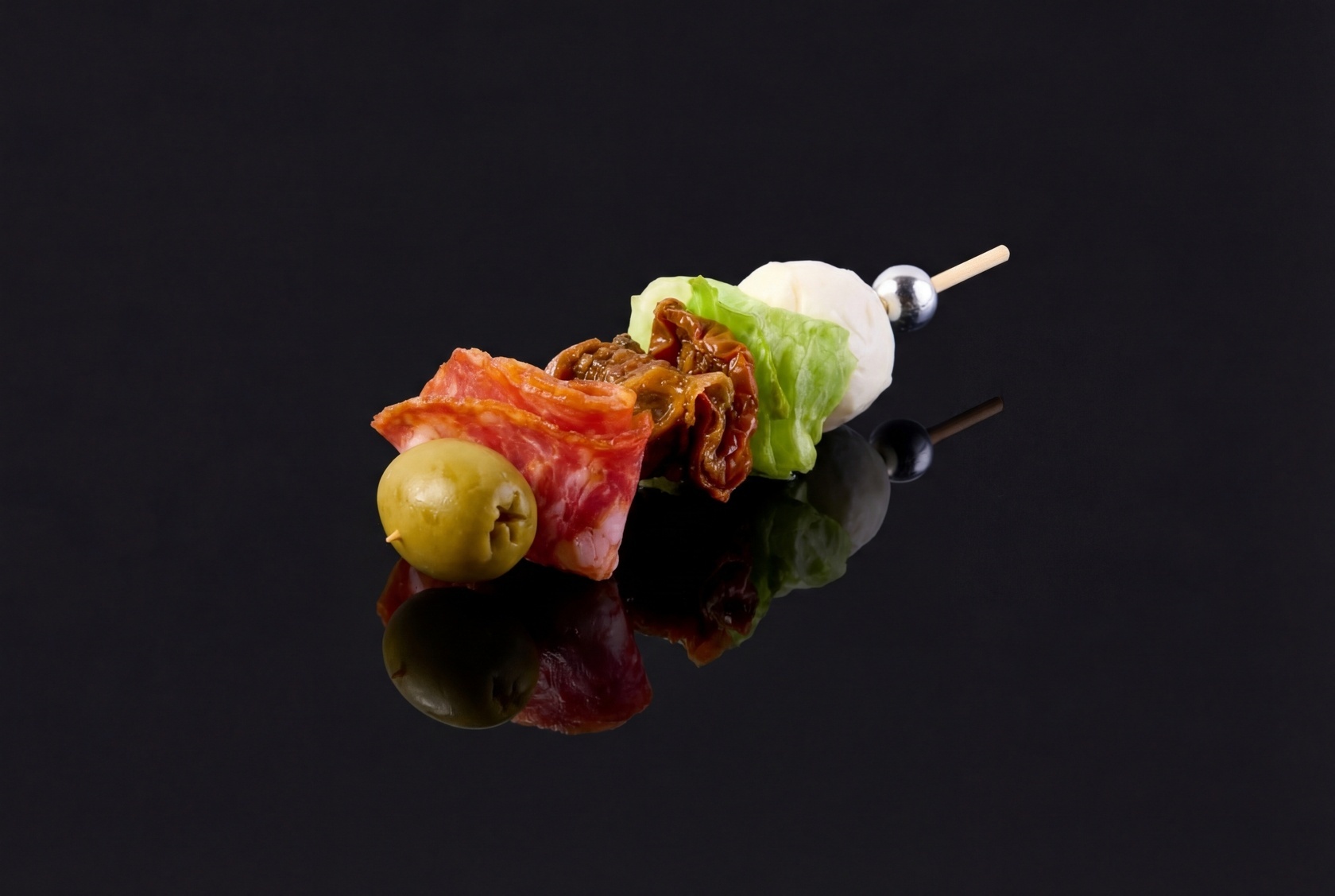 В Большом ассорти канапе собраны лучшие сочетания: нежные креветки с хрустящим огурцом, насыщенный вкус Чеддера в компании сладкого винограда, а также мини-тосты с индейкой и салями. Канапе «Антипаста» добавляет разнообразия, предлагая сочетание различных деликатесов. Эти закуски не только прекрасно выглядят, но и идеально подходят для того, чтобы угощать гостей без лишних хлопот. Наслаждайтесь вкусом и атмосферой вашего события с этим аппетитным набором!