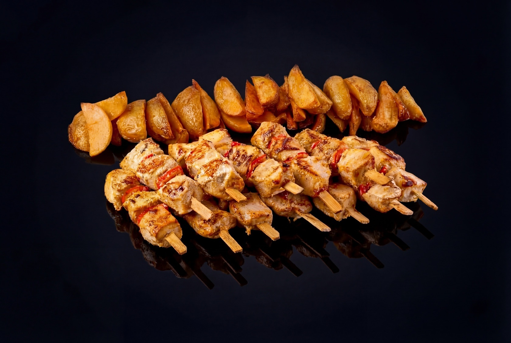 Брошеты из курицы с картофельными дольками подойдут как для праздничного стола, так и для уютного вечера с друзьями. Удобная упаковка и возможность доставки делают их отличным выбором для любых мероприятий.