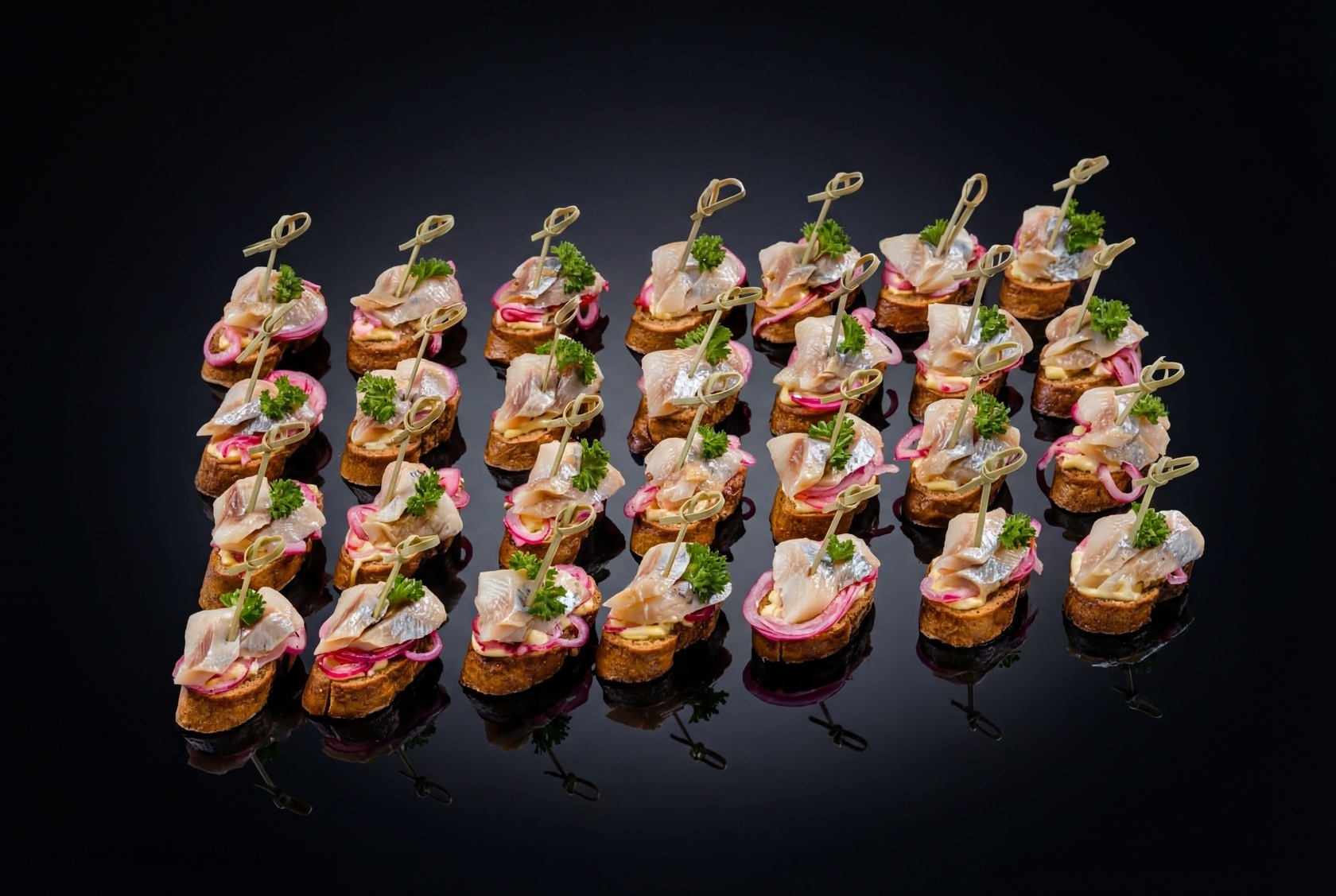 Брускетты на ржаном хлебе с сельдью идеально подходят как для вечерних встреч с друзьями, так и для праздничных застолий. Закажите их уже сегодня и подарите себе и своим близким настоящий гастрономический праздник!