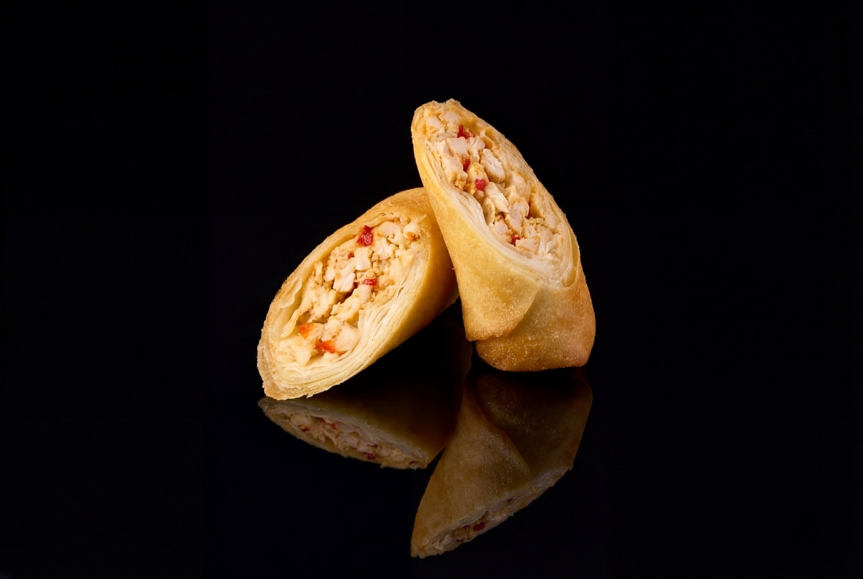 Основой роллов является классическая пшеничная лепешка. Начинку готовят из нежного куриного филе со сладким болгарским перцем и традиционными мексиканскими специями. Подают роллы с курицей в дополнении со сладким соусом Чили, в их вкусе сладкие и острые нотки находят удивительный баланс. Эстетичный внешний вид закуски делает ее аппетитной и притягательной.