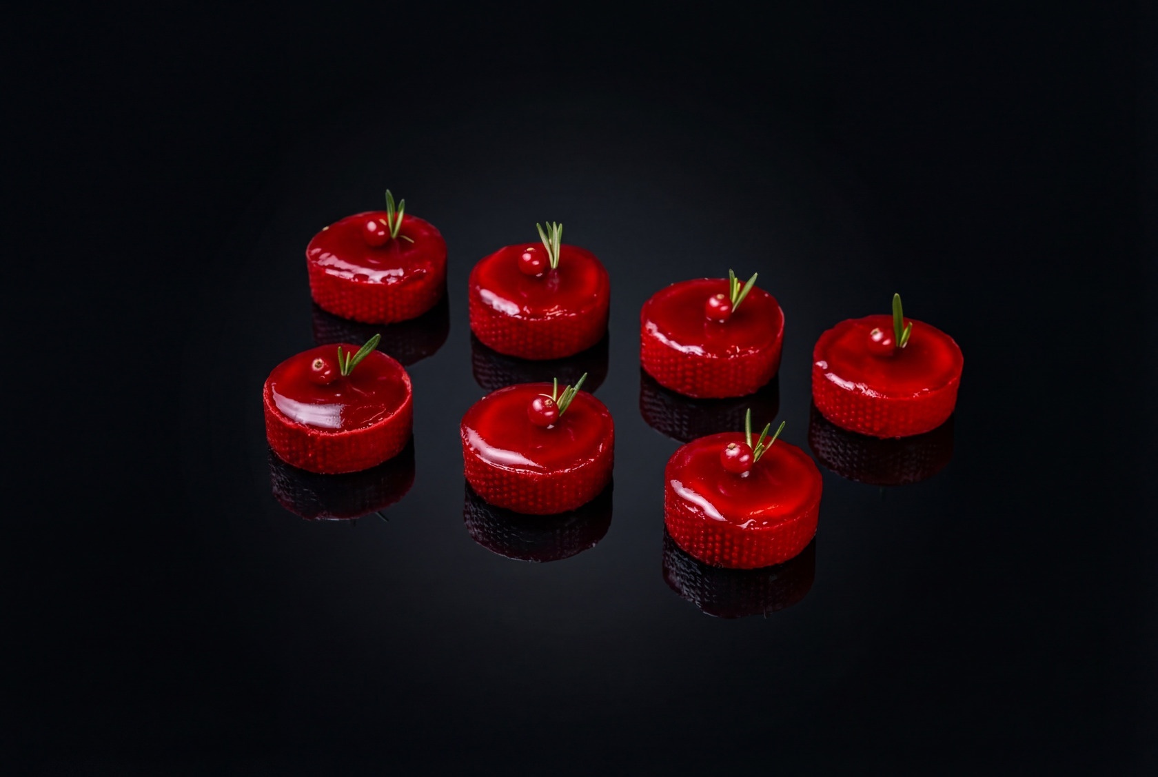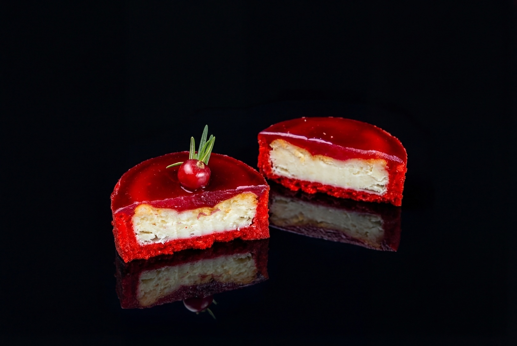 Масло сливочное, сахарная пудра, мука в/c, яйцо, миндальная мука, сыр креметте, сливки, лимон, пюре из клубники, клубника с/м, пектин, желатин, лимонная кислота, смородина красная, розмарин.