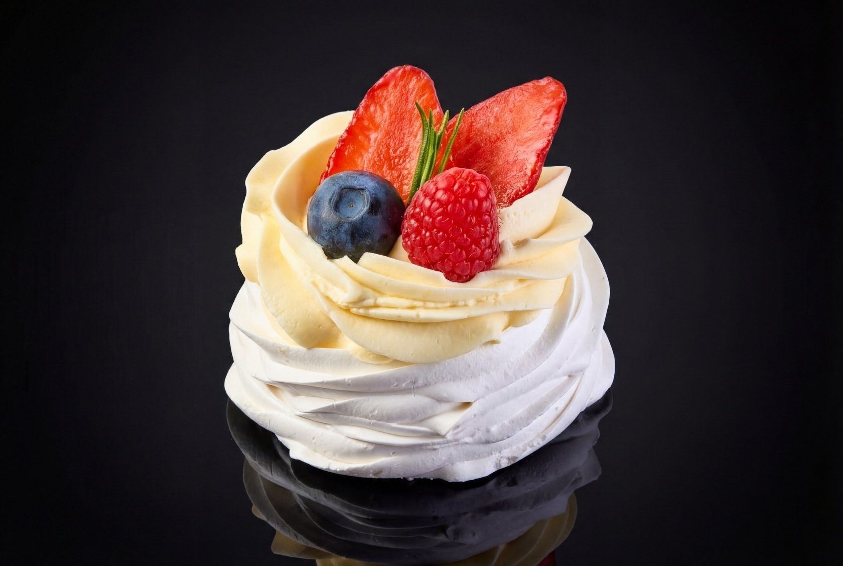 Десерт «Павлова» клубника-малина - это воздушное безе, которое имеет хрустящую корочку и мягкую серединку. Внутри десерта пюре клубники, пюре малины и маракуйя. Сочные ягоды придают этому десерту яркий фруктовый вкус и сладкую кислинку. Этот десерт украшен сливочным кремом и ягодами.