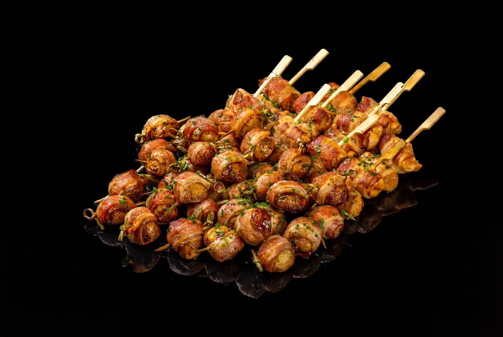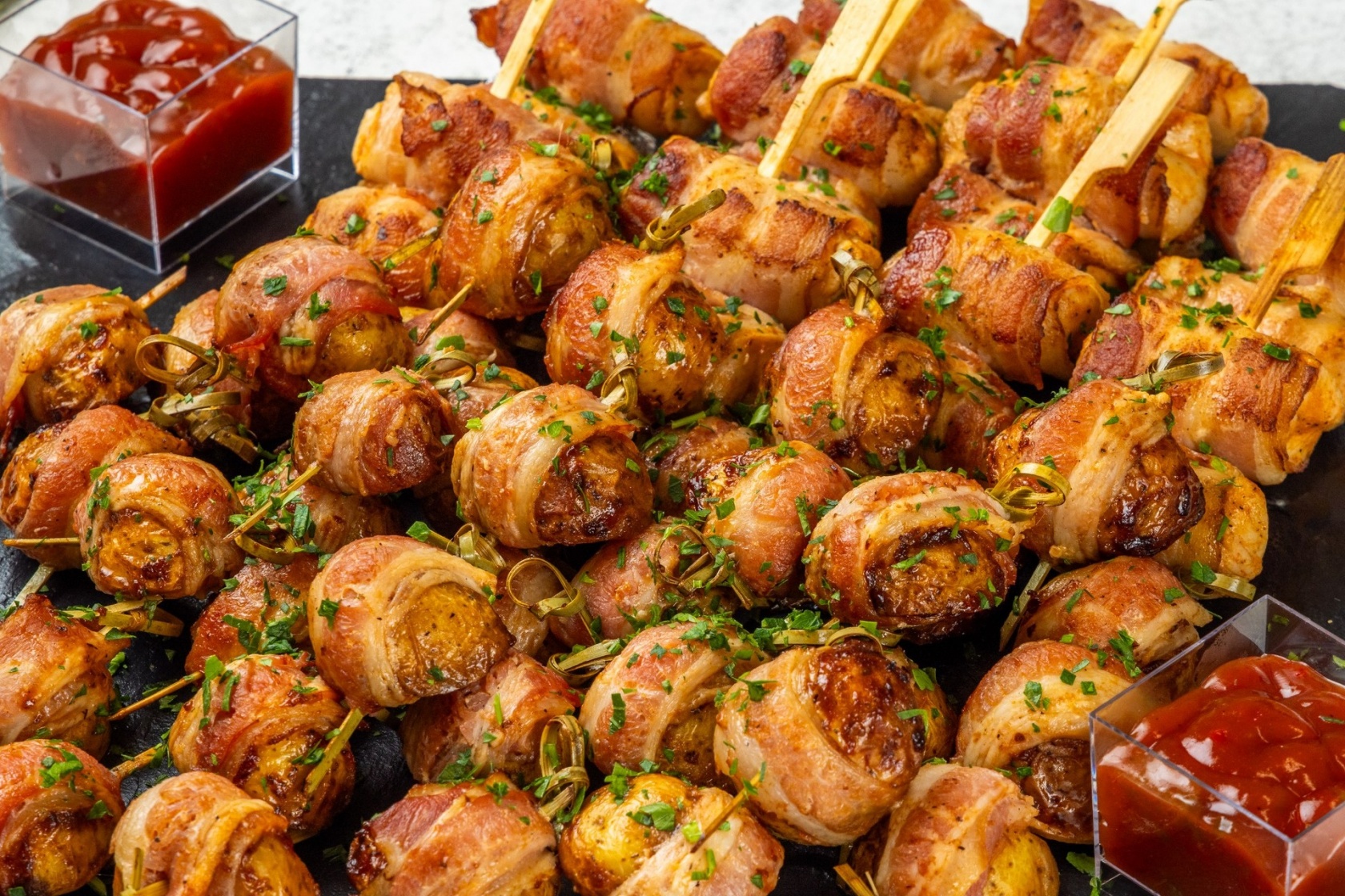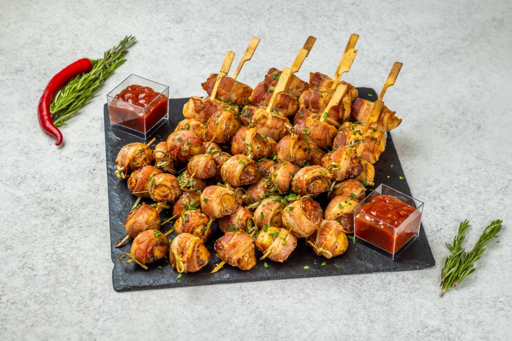 Заказала Дуэт в беконе - курица сочная, картофель мягкий, бекон хрустит. И выглядит аппетитно - идеальная закуска для праздника.