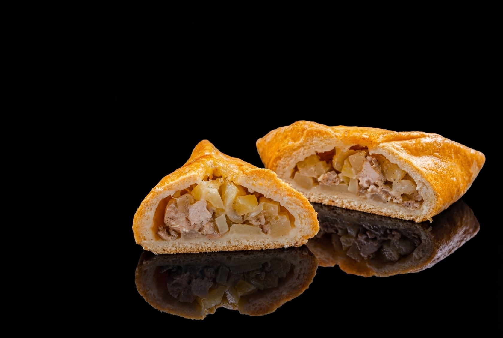 Начинка вкусная, картошечка с курочкой, тесто мягкое, вкусно