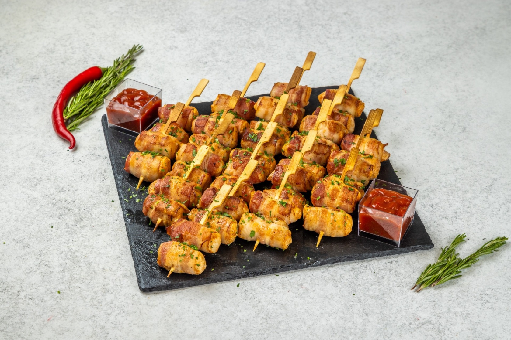 Сочное филе куриной грудки, запечённое в ароматном беконе и поданное с острым соусом сальса. Идеальное сочетание нежности и пикантности — вкус, который покоряет с первого кусочка.