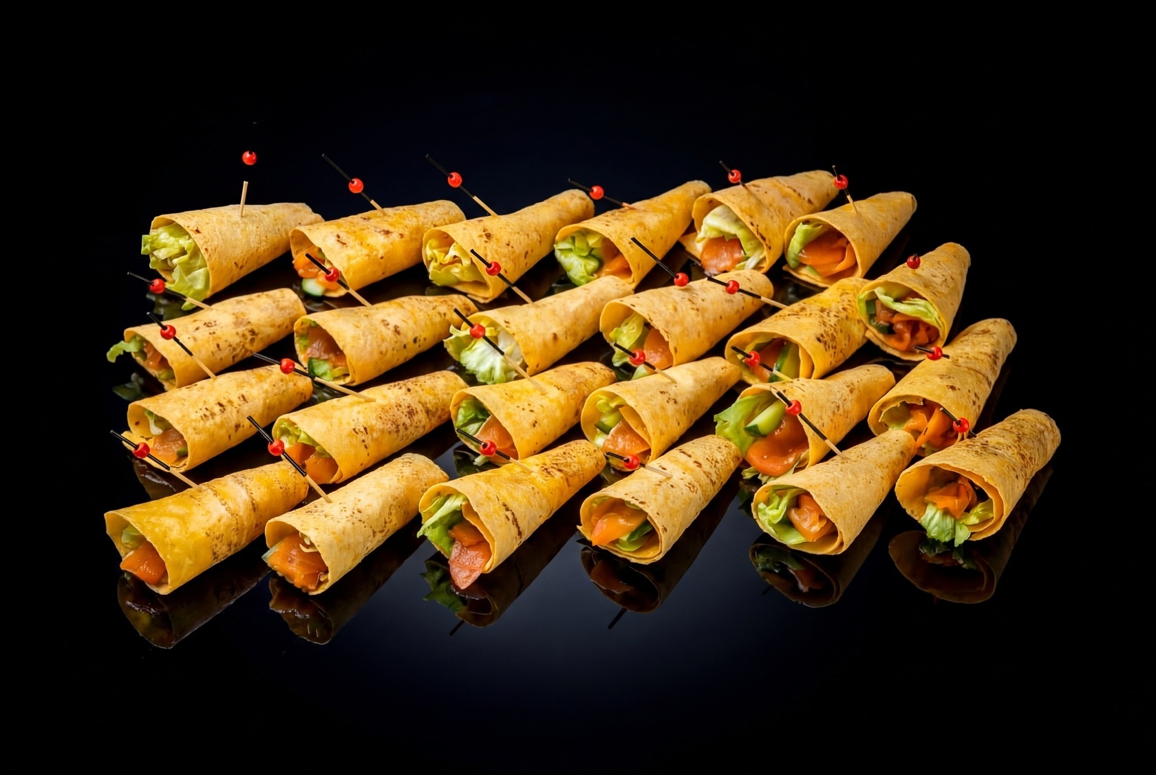 Фиш-ролл в сырной тортилье — это вкусный привет из мира street food. Панированное филе красной рыбы, свежие овощи, пикантный соус — всё это завернуто в нежную сырную тортилью. Лёгкий, сытный и очень удобный формат — идеально для ланча, пикника или вечеринки без вилок и ножей.