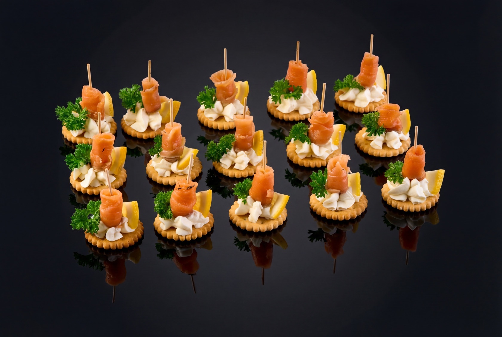 Одни из лучших канапе которые были на столе, поэтому даже нашел их на сайте и пишу отзыв. Крекер с рыбкой и сливочным сыром - отличное сочетание, рекомендую.