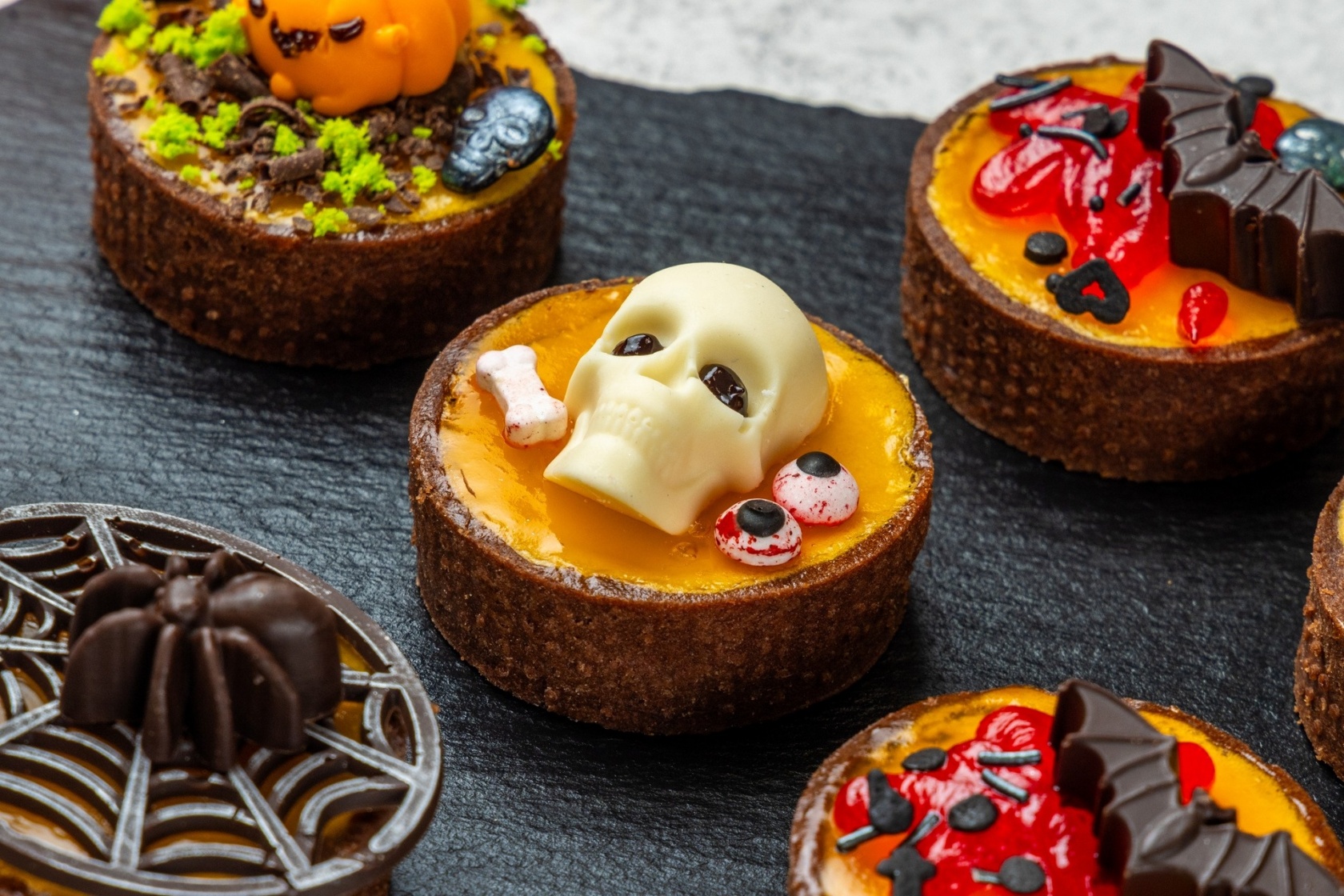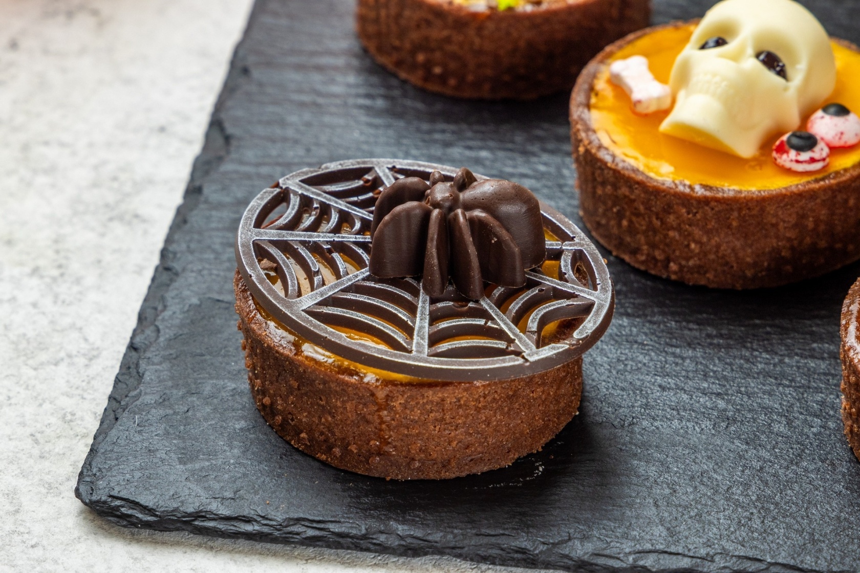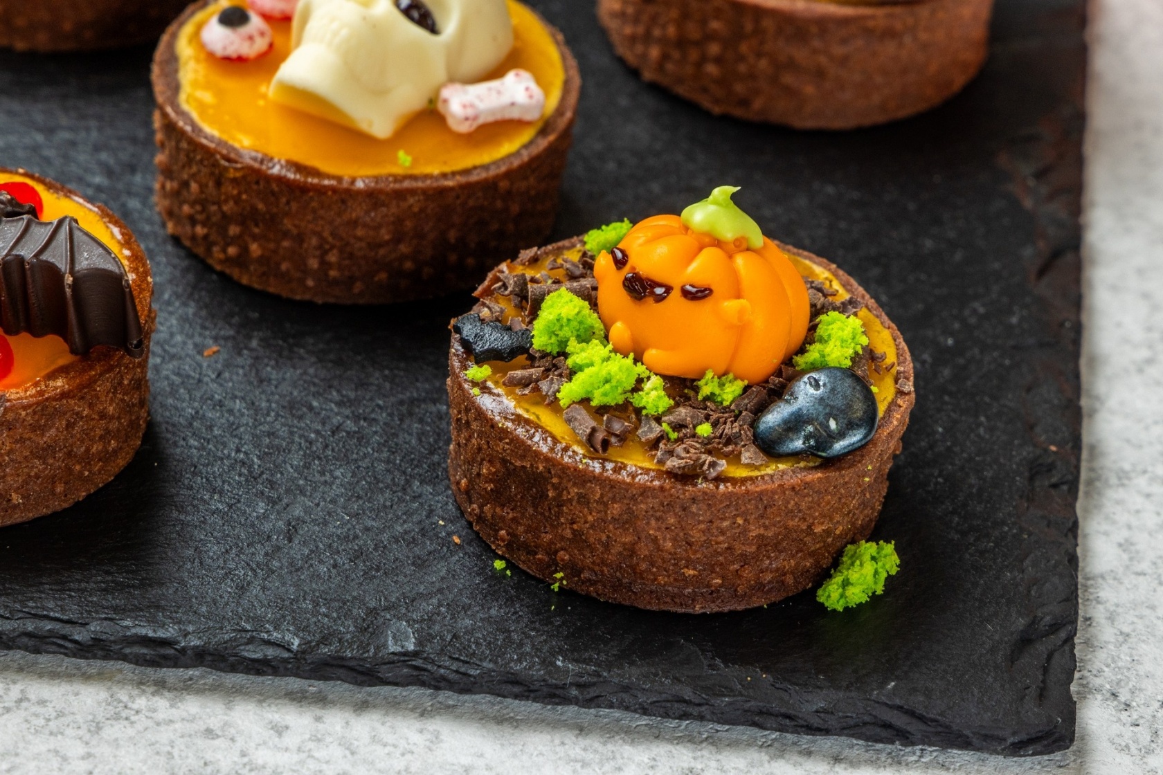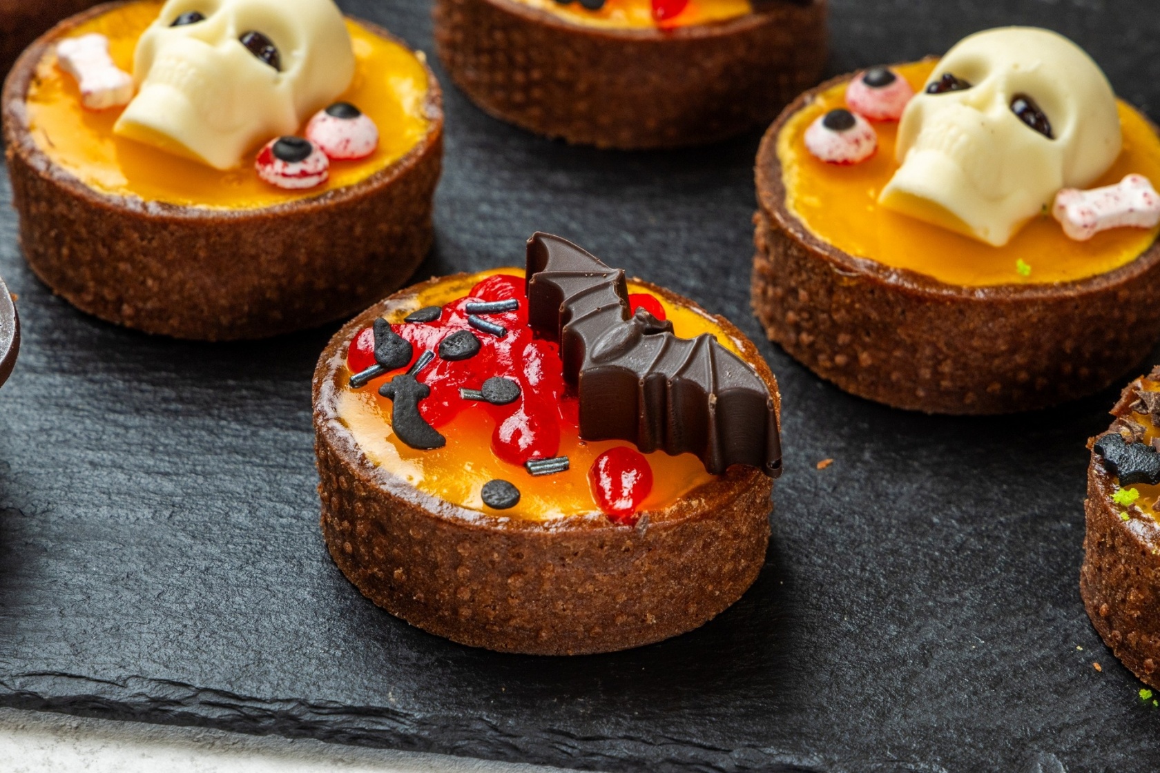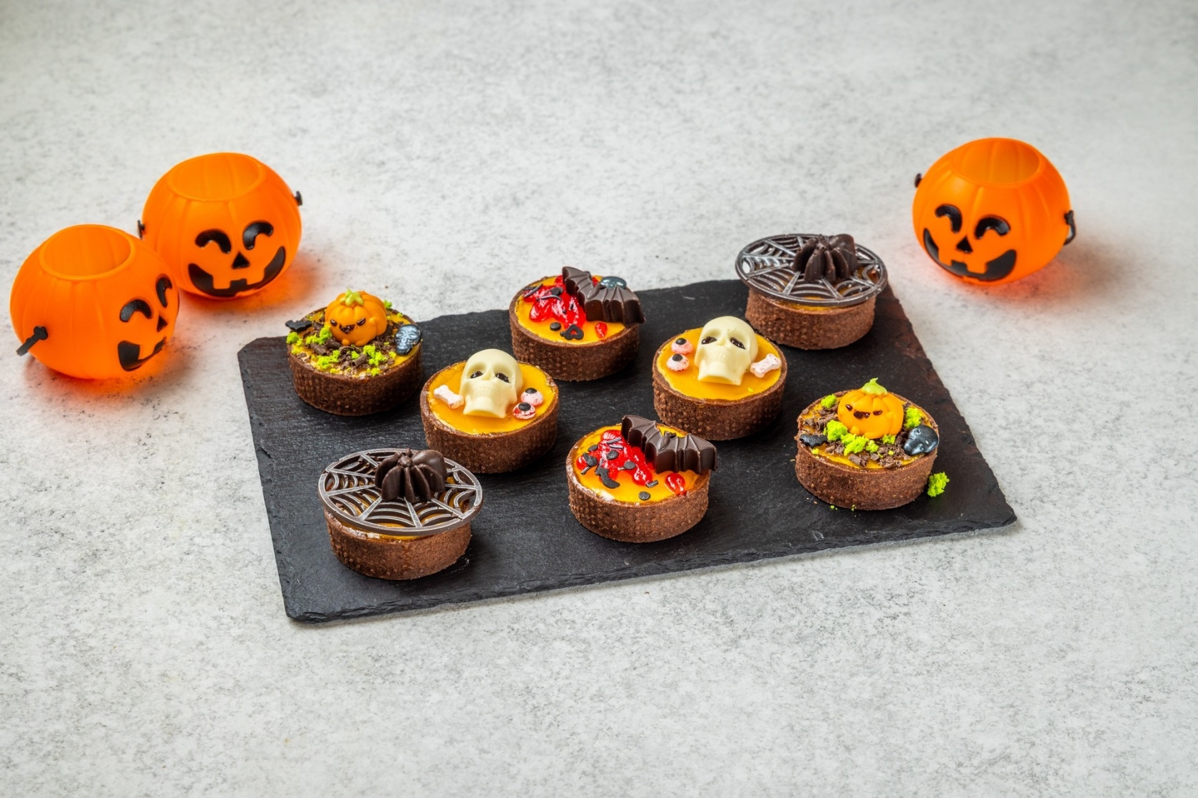 Пугающе вкусный набор десертов к Хэллоуину! Нежный чиз на шоколадной песочной основе с добавлением тыквенного пюре и лёгкой фруктовой кислинкой. Каждый чизкейк украшен тематическими фигурками — привидениями, паутинками и летучими мышами. Страшно вкусно — до последней крошки!
