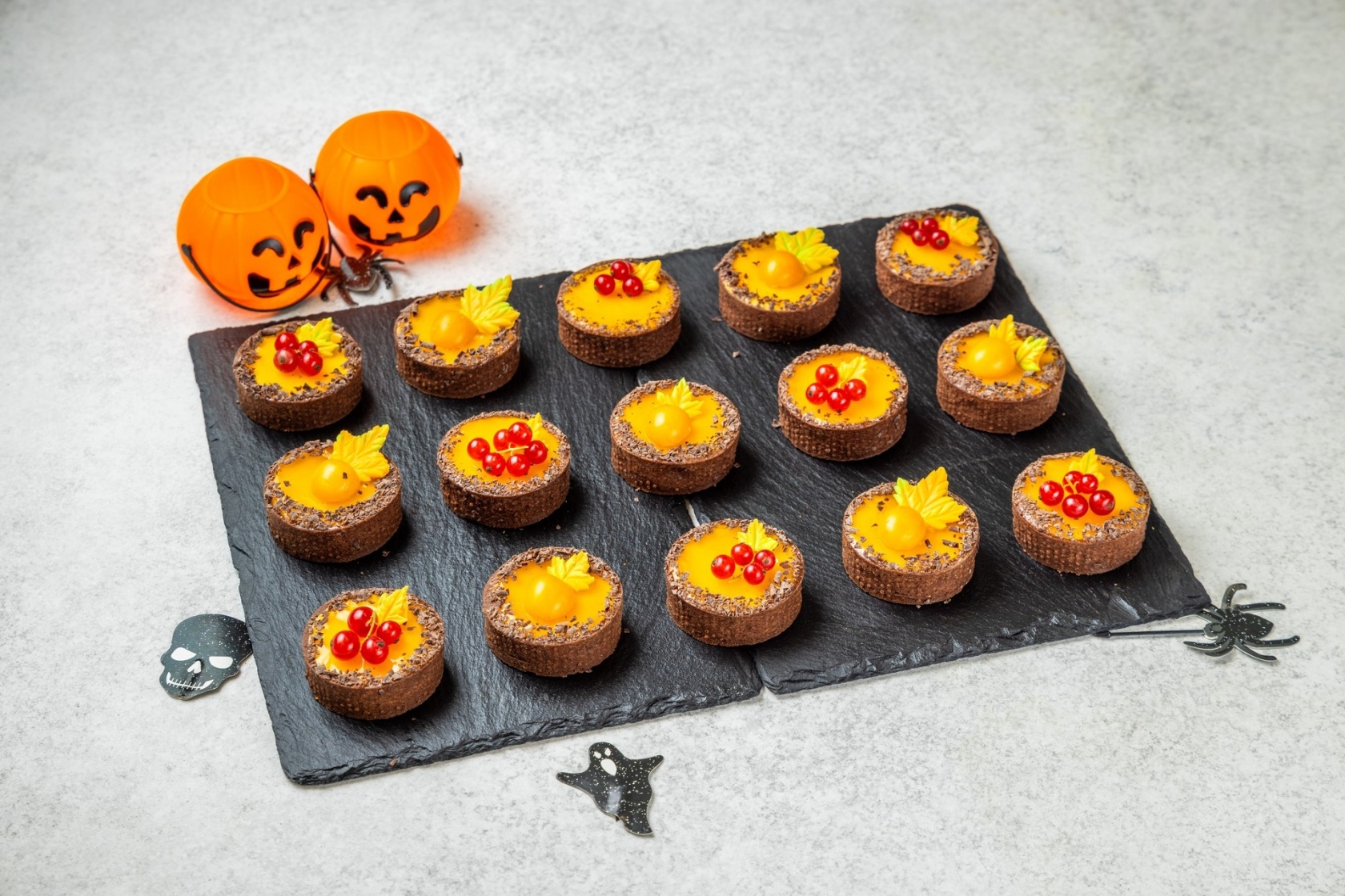 Мука пшеничная, масло сливочное, сах.пудра, соль, сахар, какао-порошок, яйцо столовое, яблоки, крахмал кукурузный, лимонная кислота, тыква свежая, пюре маракуйя с/м, яичный желток пастеризованный, цедра апельсина, покрытие гель нейтральный.