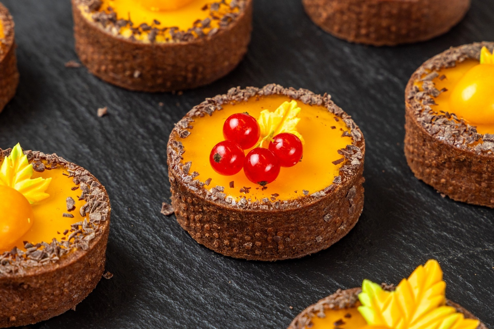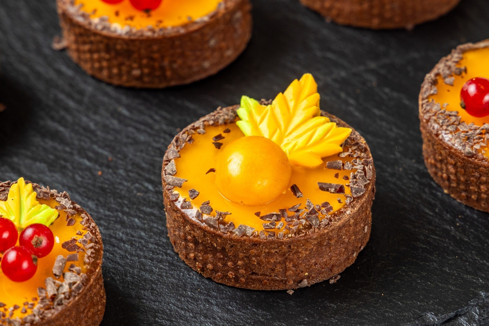 Тёплый вкус осени в каждом кусочке. Нежная шоколадная песочная основа, воздушный чиз и ароматное сочетание тыквенного пюре, яблочного конфи, красной смородины и шоколада. Уют, сладость и легкая кислинка — как прогулка по парку в золотых листьях.