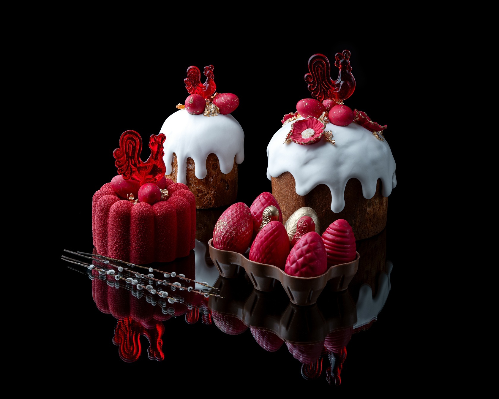 Традиционные куличи с мягким воздушным тестом и деликатной сладостью дополняют набор, создавая классическую пасхальную композицию. Пасхальные шоколадные яйца добавляют яркие сладкие акценты и завершают праздничную подачу. Набор «Красная Пасха» станет эффектным украшением пасхального стола, стильным подарком для близких, коллег и партнёров, а также прекрасным решением для праздничного чаепития.