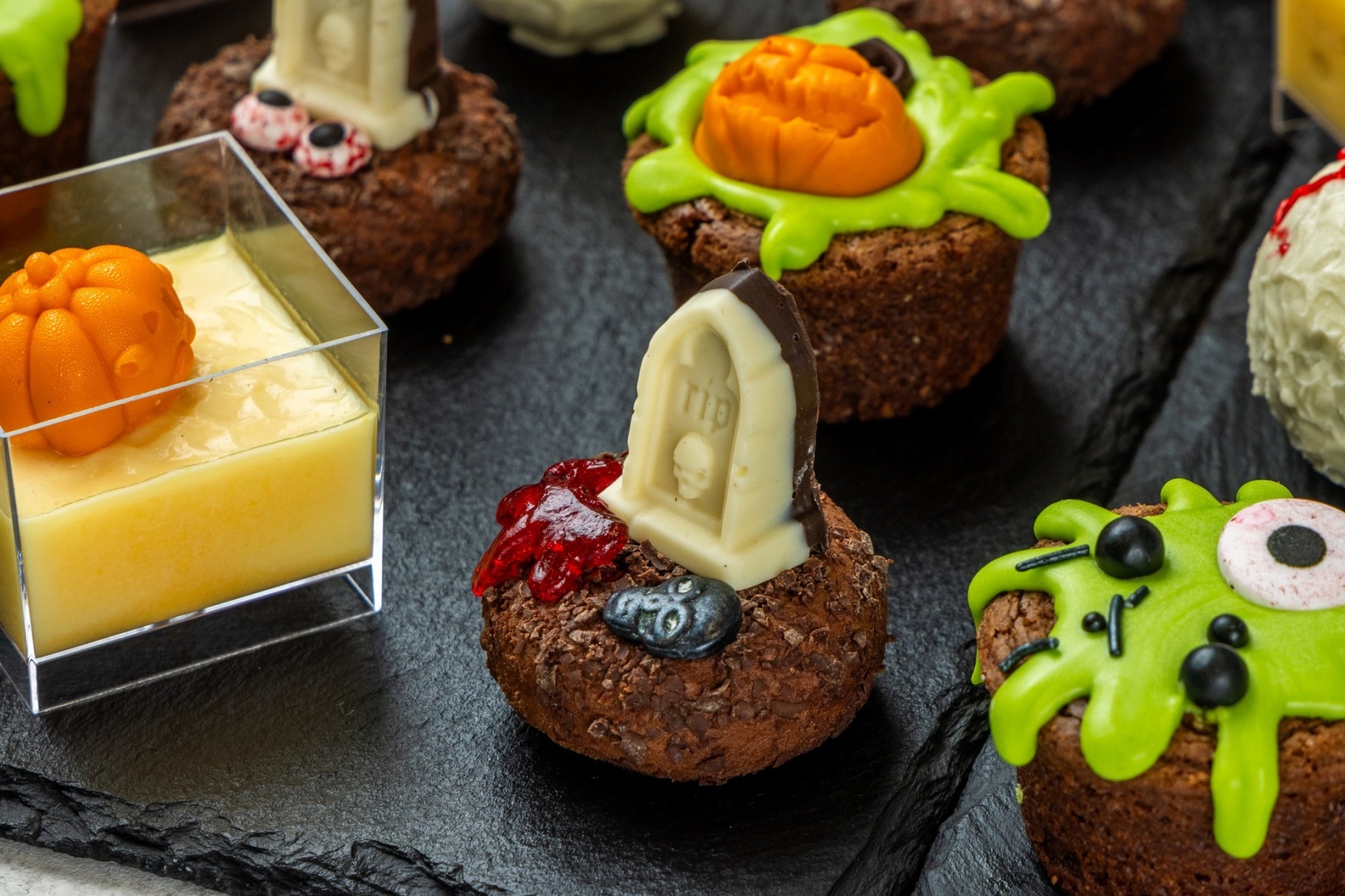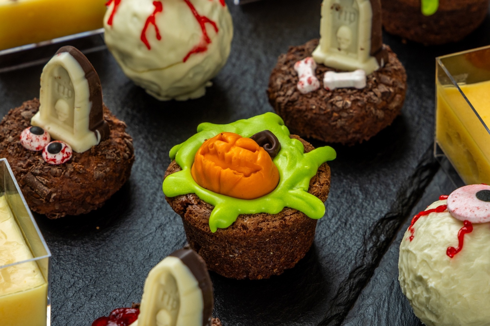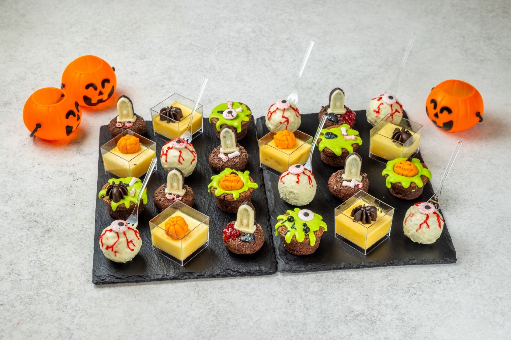 Изысканное ассорти хэллоуинских мини-десертов: нежная тыква, апельсин, клюква и шоколад соединяются в идеальный дуэт осени и волшебства. Сет, в котором жуть и сладость живут в гармонии — для тех, кто выбирает вкус с характером.