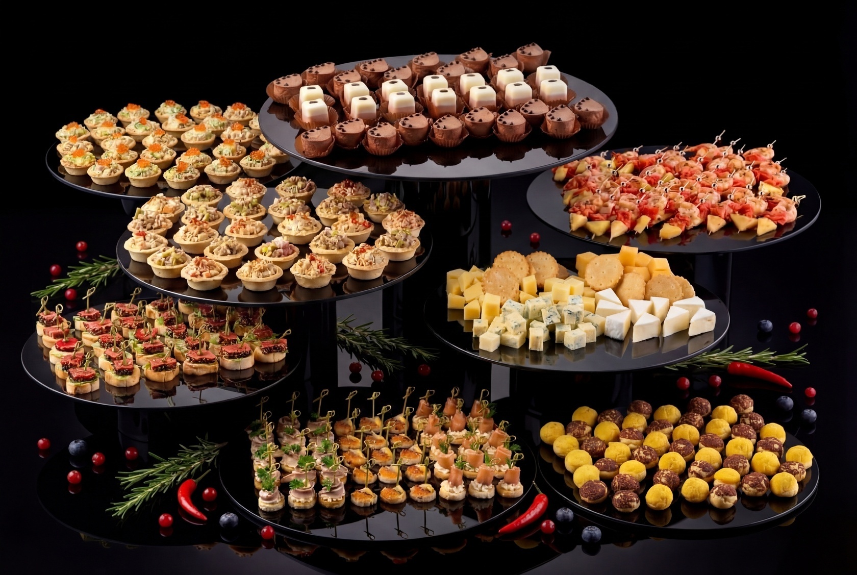 Фуршетный сет «Светская жизнь» станет отличным выбором для фуршетов, банкетов и других мероприятий, где важна не только еда, но и атмосфера.