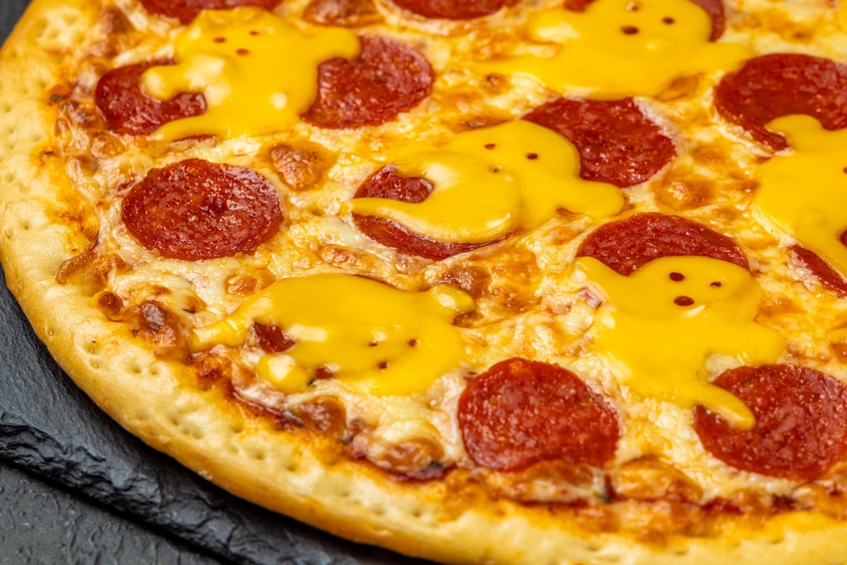 Мука пшеничная, яйцо, вода, молоко, дрожжи, соль, соус барбекю, колбаса пепперони с/к, сыр Моцарелла для пиццы, сыр плавленный Чеддер (ломтевой)