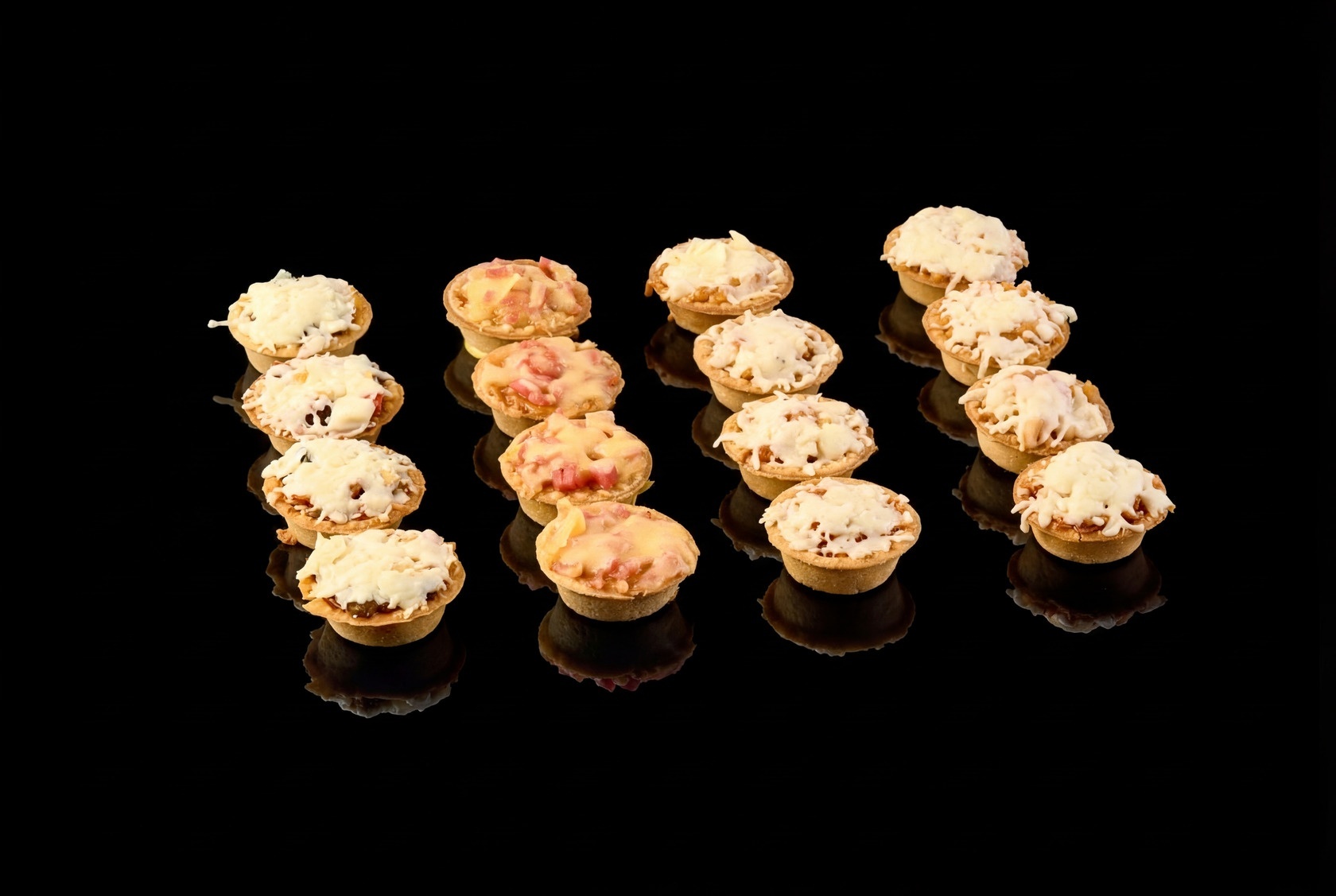 Тарталетки «киши» готовят в хрустящих тарталетках из песочного теста, которые отлично сочетаются с любыми типами начинок. В составе ассорти присутствуют закуски с начинкой из курицы, овощей, красной рыбки и ветчины. Все виды тарталеток с запечённым тертым сыром разных вкусов.
