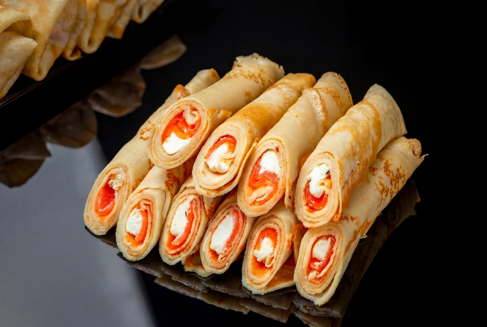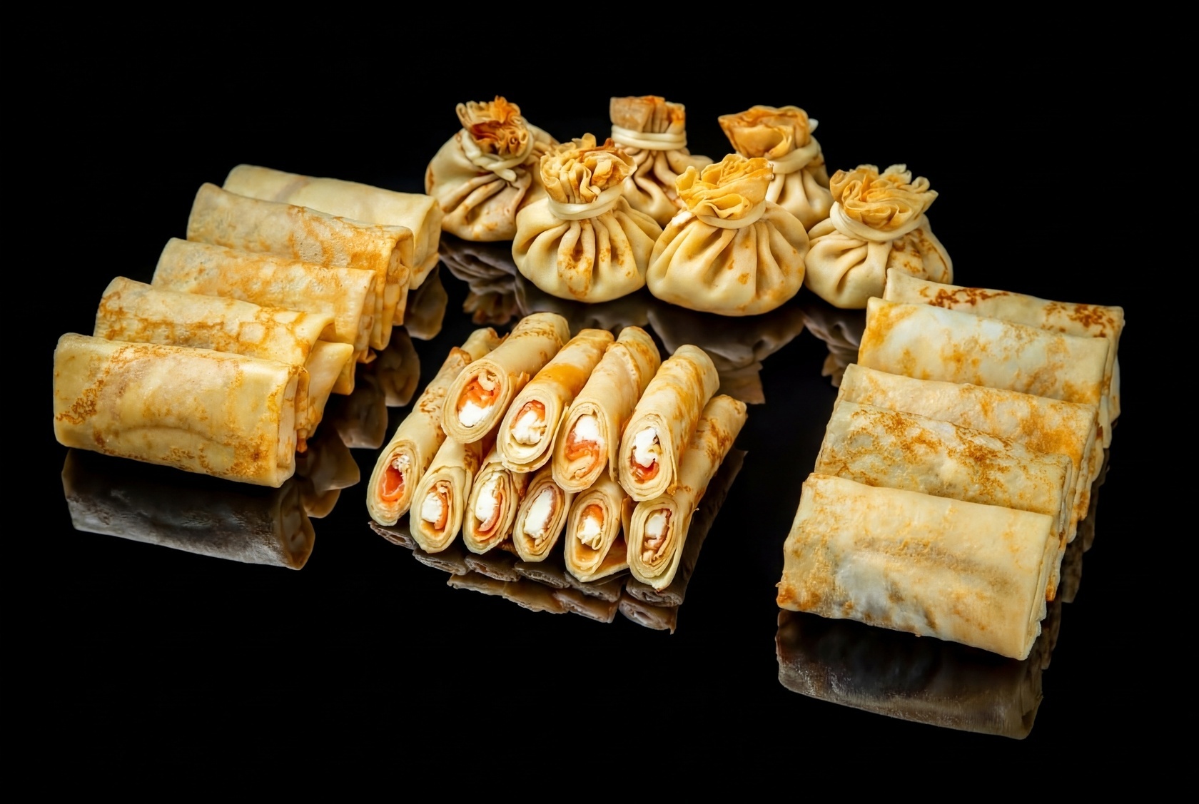Разнообразные начинки, отличный сет на кофе-паузу, блинчики тоненькие, нежные. Все супер!