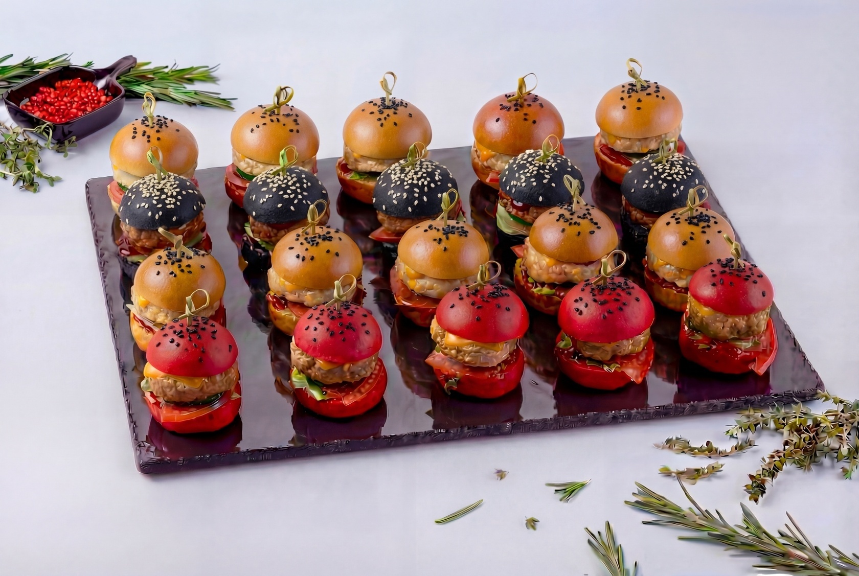 Чтобы попробовать Ассорти мини бургеров, не обязательно ждать особого торжественного случая или большого праздника. Веселая вечеринка с друзьями, просмотр фильма с любимым человеком, кофе-брейк на работе или подготовка к корпоративному празднику – набор мини бургеров будет очень кстати. В ассорти включено три вида закуски с индивидуальным набором ингредиентов.
