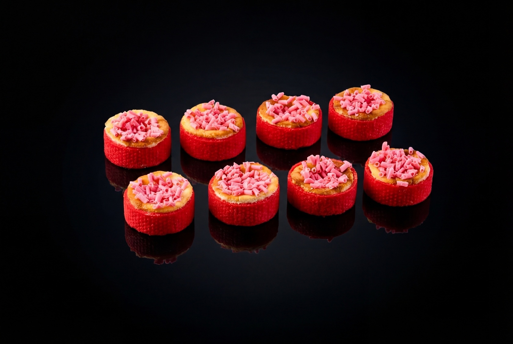 Мини-тарты «Чизкейк» — это изысканное лакомство, которое порадует вас своей легкостью и нежным вкусом. Каждый тарт выполнен на основе хрустящего теста из пшеничной и миндальной муки. Начинка из сливочного сыра и свежих сливок с легким лимонным акцентом создает гармоничное сочетание сладости и кислинки.