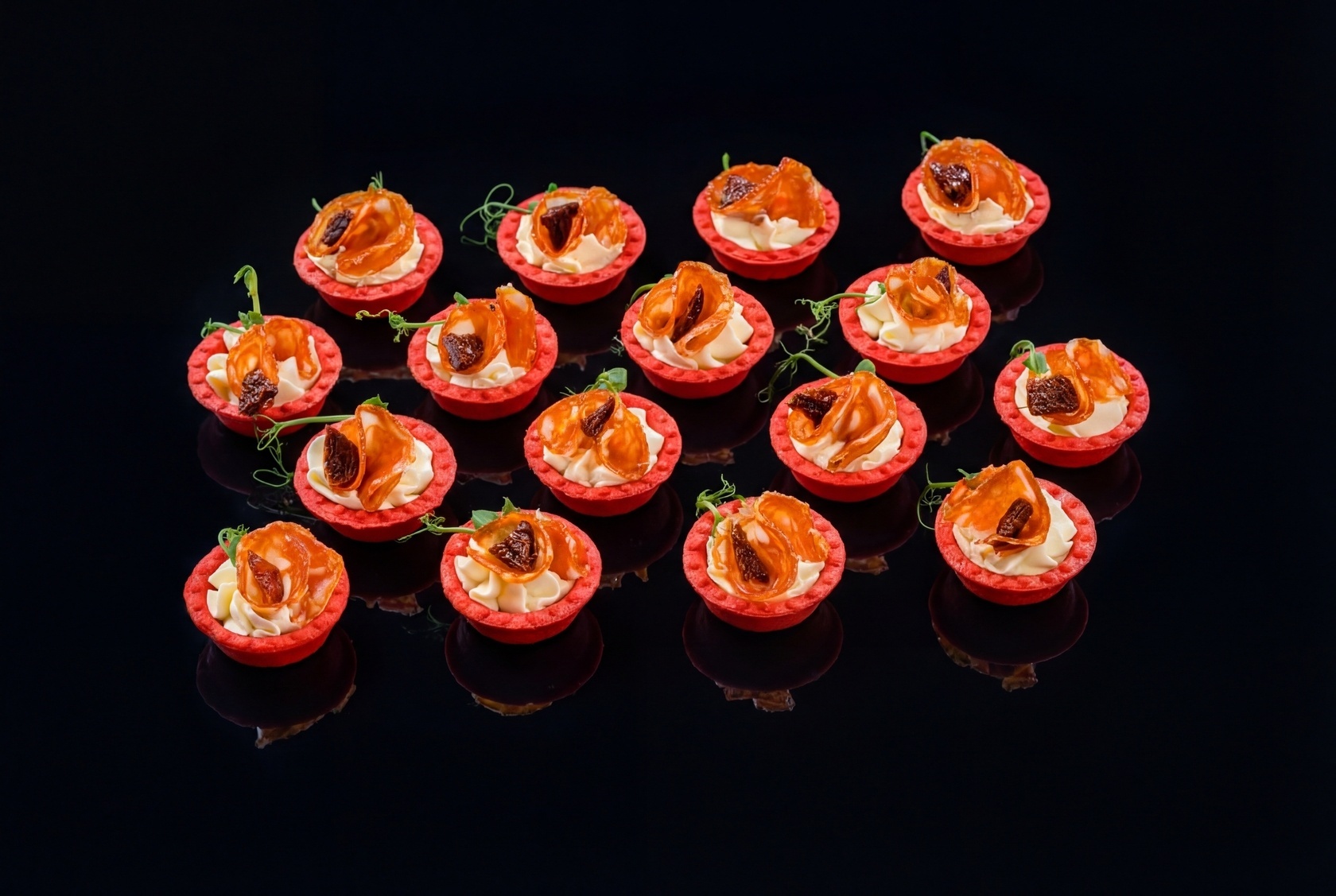 Тарталетки с сыром креметте и чоризо подходят для любого мероприятия — от дружеских встреч до торжественных банкетов — наши тарталетки станут настоящим украшением вашего стола. Позвольте себе насладиться изысканным сочетанием текстур и ароматов, закажите тарталетки с сыром креметте и чоризо уже сегодня и удивите своих гостей.