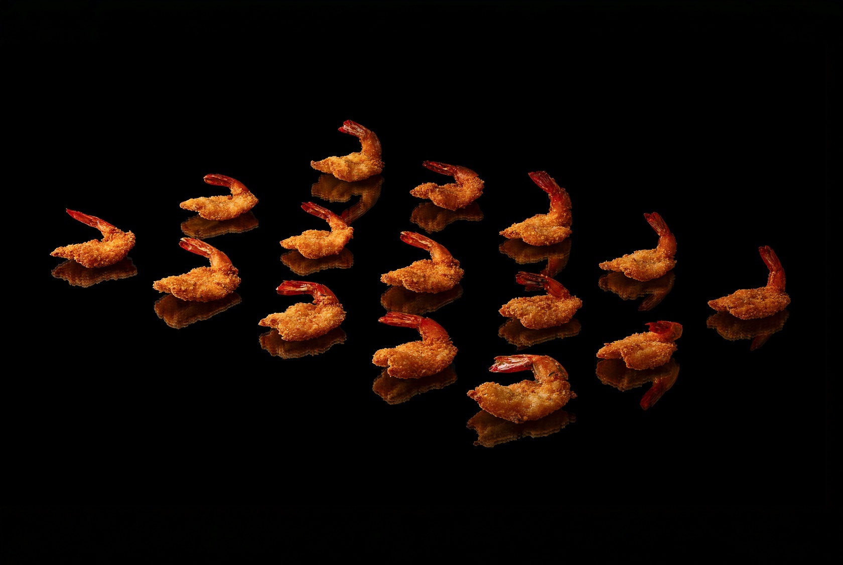 Тигровые креветки в лёгком кляре, обжаренные во фритюре до ровной золотистой корочки. Чистый вкус морепродукта подчёркнут устричным соусом и хрустящей панировкой панко - сдержанная классика для фуршета и премиум-кейтеринга.
