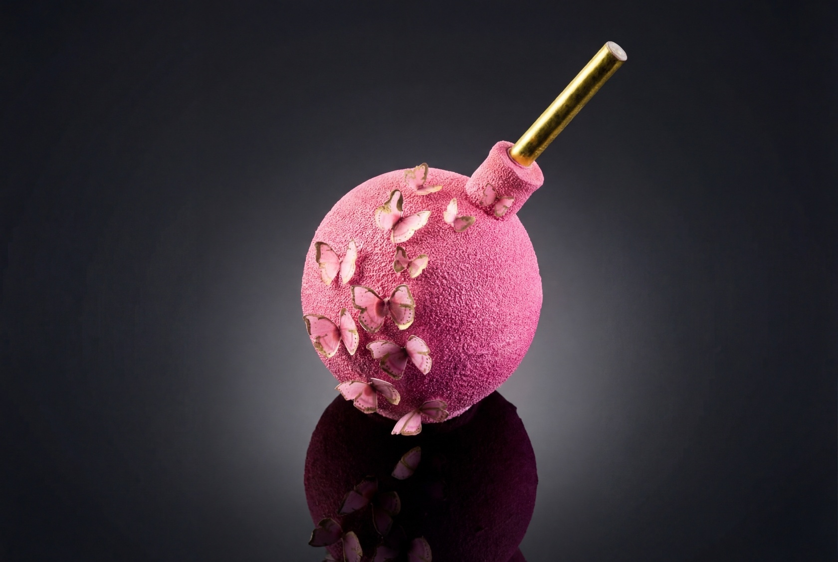 Внутри этой великолепного торта находится сердце с пожеланием или можем вложить обручальное кольцо, что делает этот торт идеальным выбором для предложения руки и сердца. В комплект с тортом входит фейерверк и молоточек. С помощью молоточка можно разбить бомбочку, чтобы обнаружить внутри то самое сердце и удивительно вкусный торт с малиновой начинкой.