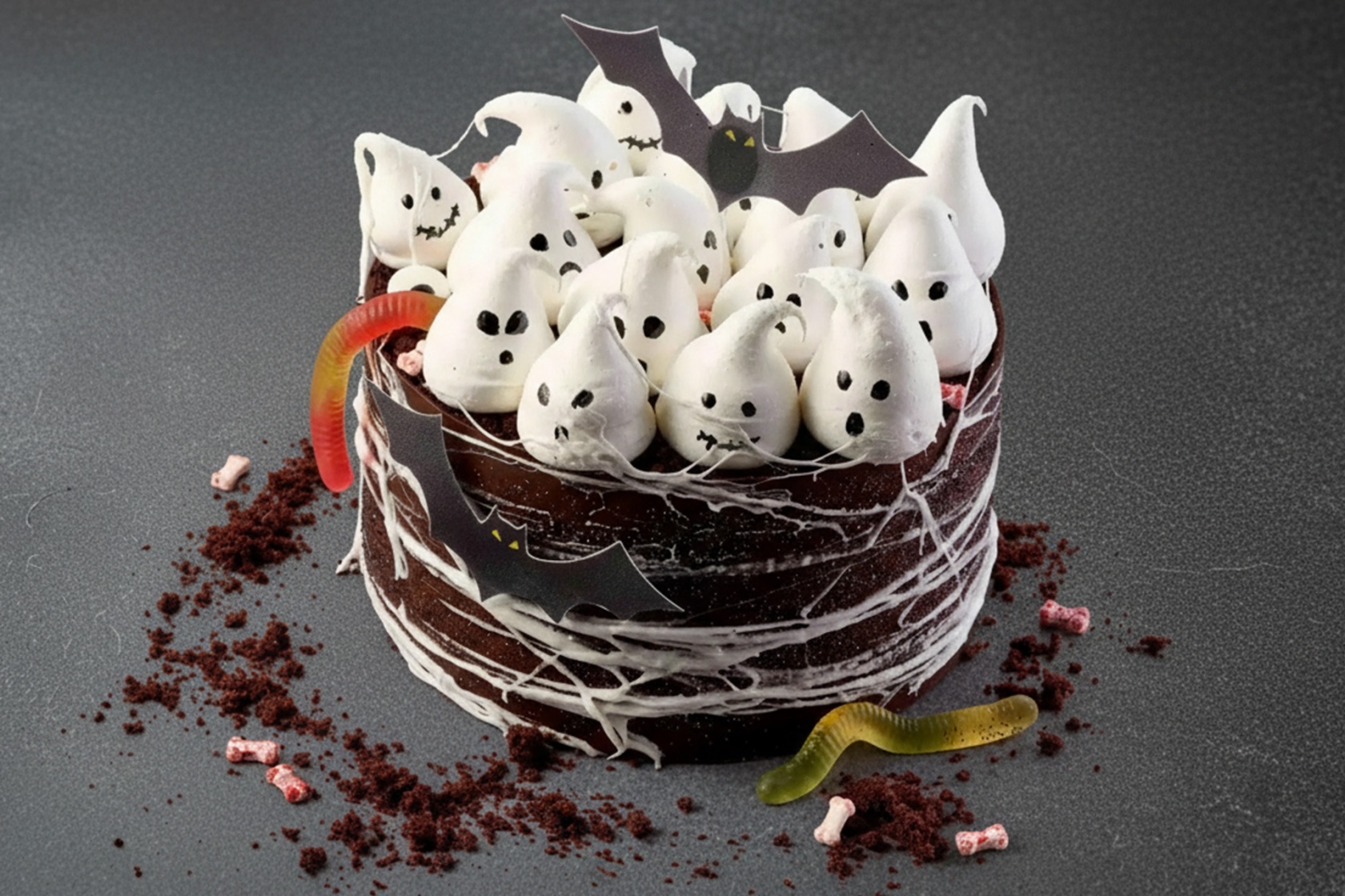 Торт тирамису «Приведение» удивит гостей вкусом и тематическим украшением. Съедобные приведения, мармеладные червячки, паутинка – ужасающий десерт для вашей вечеринки.