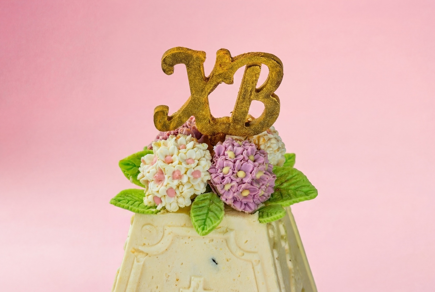Творог, масло сливочное, сахарная пудра, сливки, цукаты, желатин, яичный желток, глазурь белая и темная, миндальные лепестки