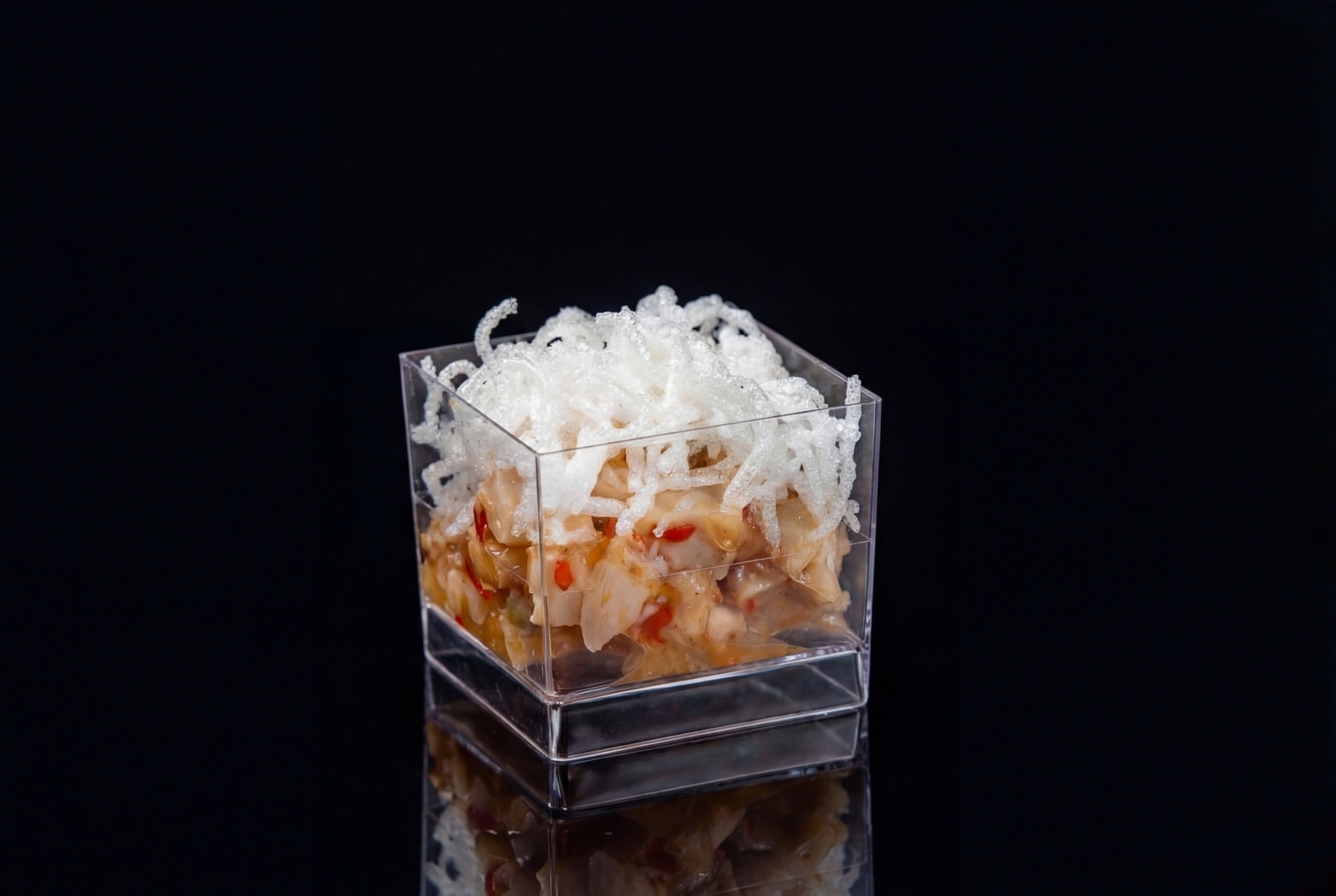 Откройте для себя веррины «Азия» — идеальное решение для фуршета. Веррины с салатом «курица с фунчозой» объединяют нежное куриное филе, насыщенные специи и хрустящую фунчозу, соус чили добавляет яркий акцент.