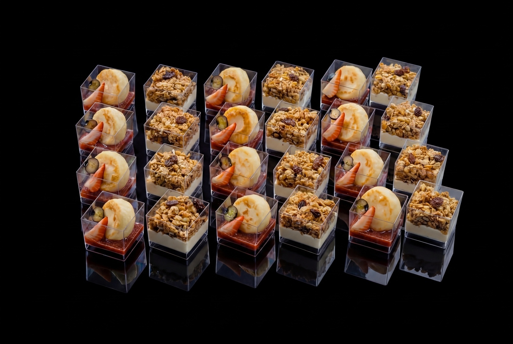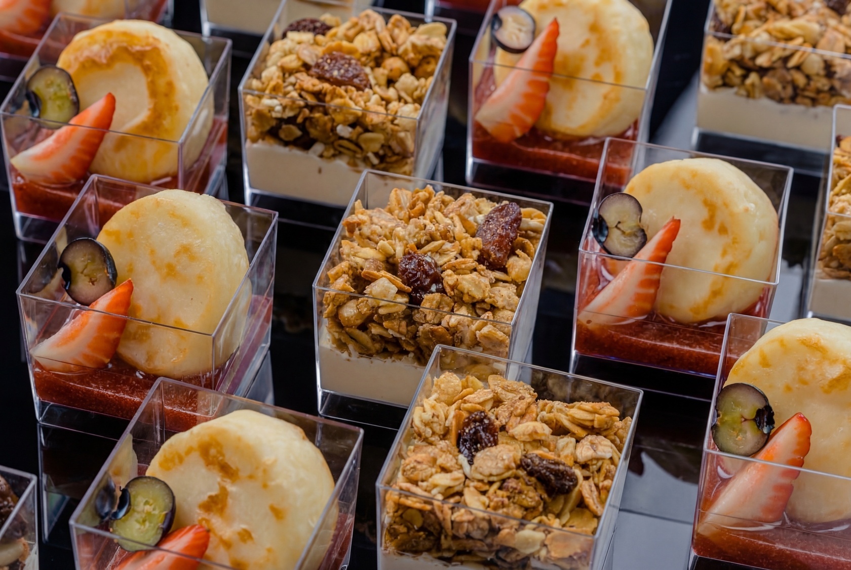Провели отличный утренний фуршет с кофе и чаем, один из наборов был этот с сырниками и мюслями. Отличный баланс вкуса, в меру сладко, сытно.